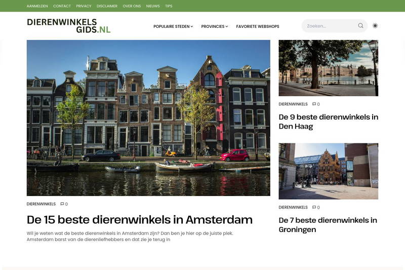 Dierenwinkelsgids.nl is a Dutch online guide listing pet stores throughout the Netherlands. It helps pet owners find trusted shops by city, offering food, supplies, accessories and more, plus info to compare and choose the right store for your animal’s needs.