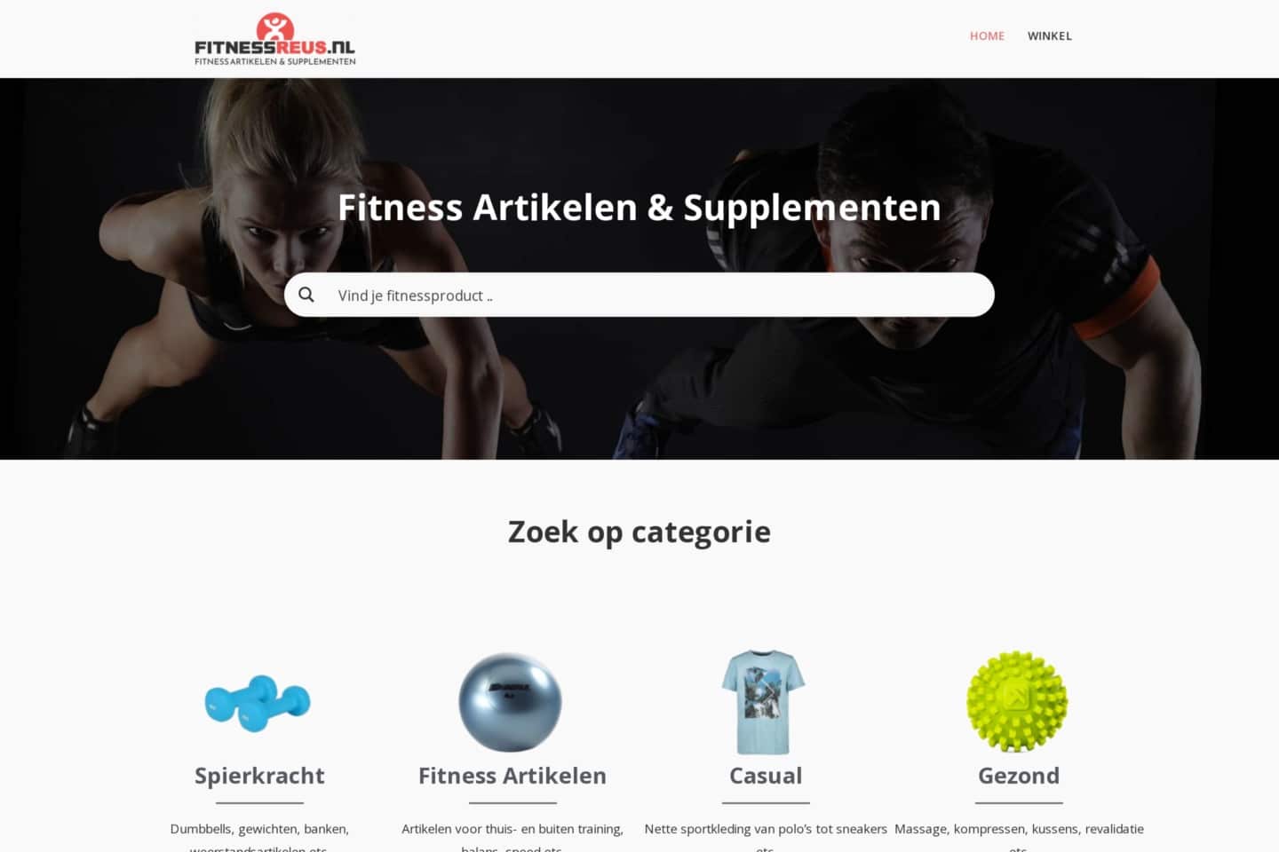 Webshop for fitness articles and supplements. Search on categories and find your fitness product via our selected partners.